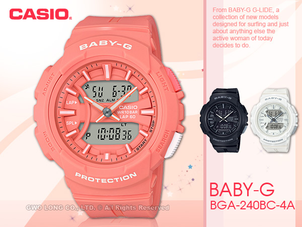 BGA-240BC-4A CASIO BABY-G 夢幻慢跑雙顯女錶 橡膠錶帶 粉橘 防水100米