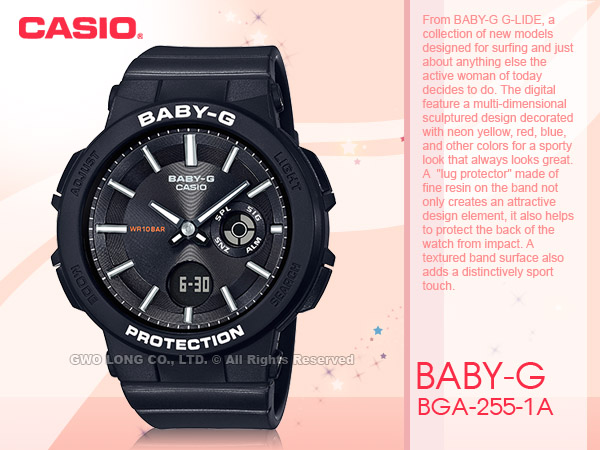 BGA-255-1A CASIO BABY-G 酷炫雙顯女錶 橡膠錶帶 黑色 防水100米