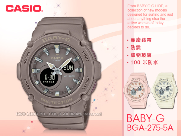 BGA-275-5A CASIO BABY-G 雙顯女錶 樹脂錶帶 棕色 防水100米 BGA-275