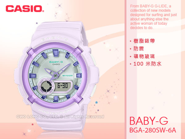 BGA-280SW-6A CASIO BABY-G 雙顯女錶 膠質錶帶 白藕色 防水100米 BGA-280
