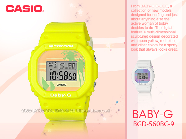 BGD-560BC-9 CASIO BABY-G 海灘風情電子錶 橡膠錶帶 螢光黃 防水200米