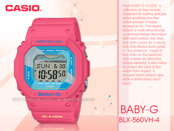BLX-560VH-4 CASIO BABY-G 復古衝浪電子女錶 橡膠錶帶 桃紅 潮汐圖 防水200米