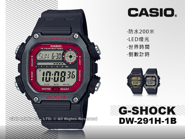 DW-291H-1B CASIO 粗曠運動電子錶 橡膠錶帶 防水200米 整點響報