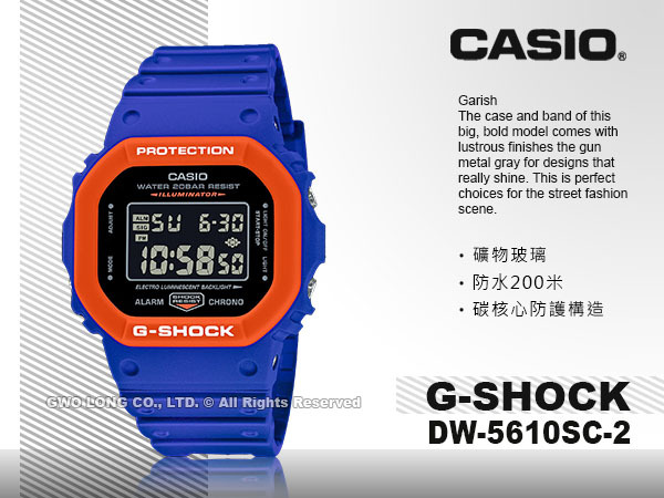 DW-5610SC-2 CASIO G-SHOCK 運動電子錶 男錶 橡膠錶帶 防水200米 DW-5610SC