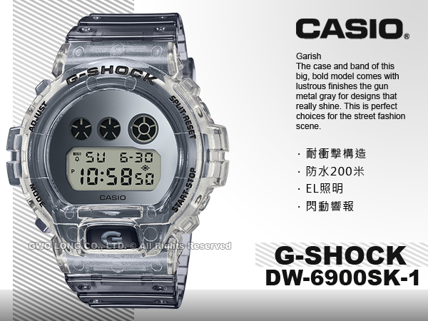 DW-6900SK-1 CASIO G-SHOCK 電子男錶 EL照明 鬧鈴 防水200米