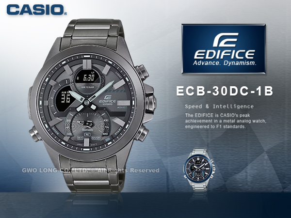 ECB-30DC-1B CASIO EDIFICE 雙顯男錶 智慧藍牙連線 不鏽鋼錶帶 防水100米 ECB-30D