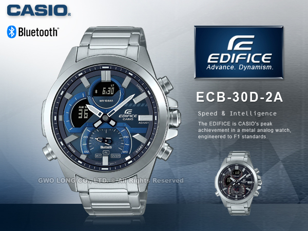 ECB-30D-2A CASIO EDIFICE 藍牙智慧連線 男錶 不鏽鋼錶帶 防水100米 ECB-30D