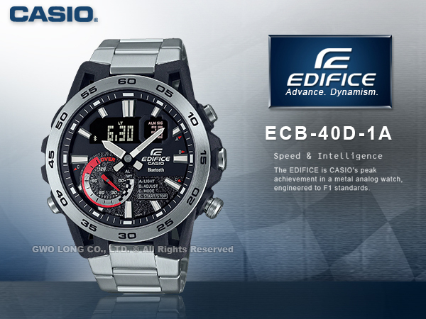 ECB-40D-1A CASIO EDIFICE 雙顯男錶 賽車設計款 智慧藍牙 不鏽鋼錶帶 防水100米 ECB-40