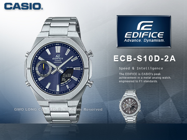 ECB-S10D-2A EDIFICE 藍牙智慧連線 雙顯男錶 寶藍 超薄錶殼 藍寶水晶玻璃 防水100米 ECB-S10D