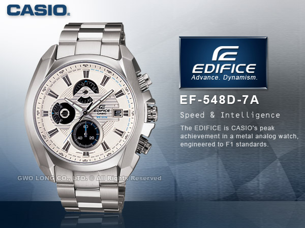 EF-548D-7A CASIO EDIFICE 男錶 不鏽鋼錶帶 白面 碼錶 日期顯示
