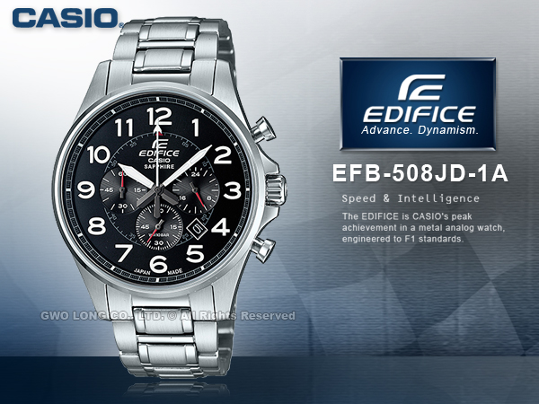 EFB-508JD-1A CASIO EDIFICE 男錶 不鏽鋼錶帶 黑面 日期顯示 定期報時
