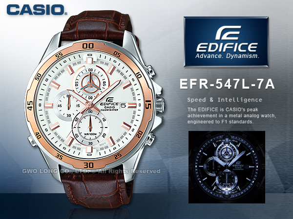 EFR-547L-7A CASIO EDIFICE 男錶 皮革錶帶 白面 碼錶 日期顯示
