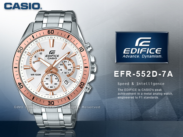 EFR-552D-7A CASIO EDIFICE 男錶 不鏽鋼錶帶 白面 防水 碼錶 日期顯示