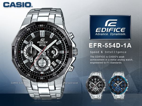 EFR-554D-1A CASIO EDIFICE 男錶 不鏽鋼錶帶 黑面 碼錶 防水