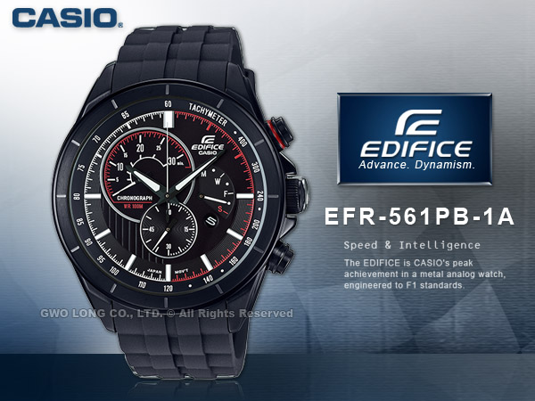 EDIFICE推出全新三針三眼計時碼錶錶款-EFR-561DB/EFR-561PB系列,三針三眼設計可輕鬆閱讀各項時間與計時資訊,並提供不鏽鋼或樹脂錶帶兩種選擇,錶圈皆透過黑色離子IP處理完成,全黑的錶盤利用黃色或紅色點綴設計完成,為錶款增添設計感,全系列具備防水100米、視距儀、計時碼錶、日期顯示等功能。