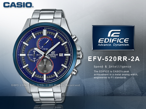 EFV-520RR-2A CASIO EDIFICE 男錶 不鏽鋼錶帶 藍色 防水 計時碼錶 日期顯示