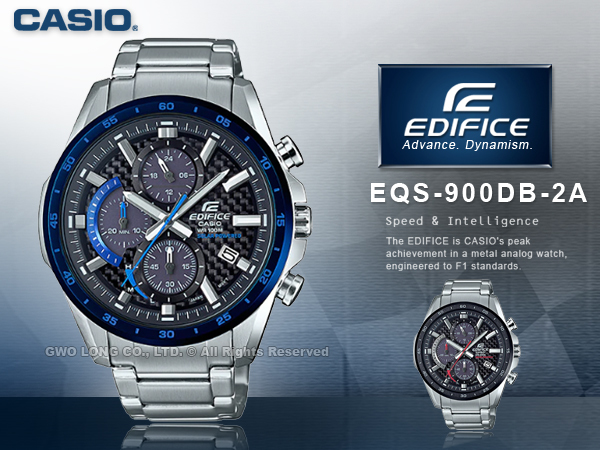 EQS-900DB-2A CASIO EDIFICE 太陽能賽車三眼 不鏽鋼錶帶 黑x藍 碳纖維轉盤 防水100米