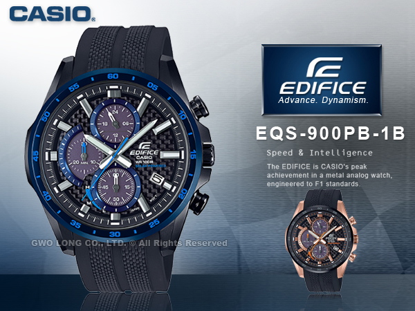 EQS-900PB-1B CASIO EDIFICE 太陽能運動賽車三眼男錶 橡膠錶帶 黑X藍 100米防水
