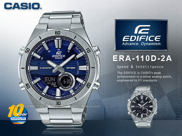 ERA-110D-2A CASIO EDIFICE 雙顯男錶 不鏽鋼錶帶 藍面 電話備忘錄