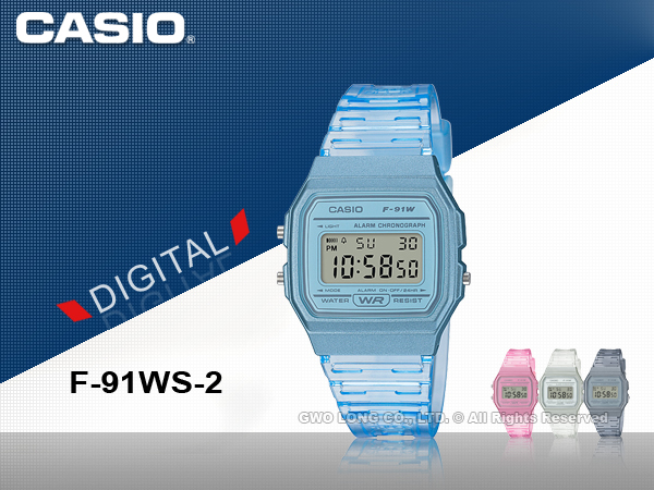 F-91WS-2 CASIO 果凍材質系列 電子錶 小巧簡約錶面 樹脂錶帶 防水 LED照明