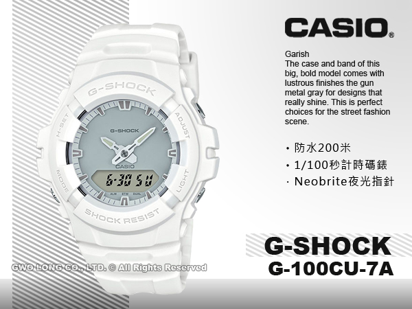 G-100CU-7A CASIO G-SHOCK 雙顯錶 橡膠錶帶 防水200米