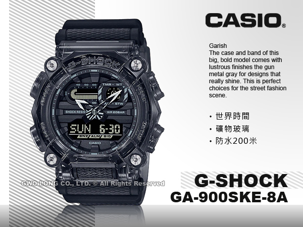 GA-900SKE-8A CASIO G-SHOCK 雙顯 男錶 樹脂錶帶 半透明 防水200米 GA-900SKE