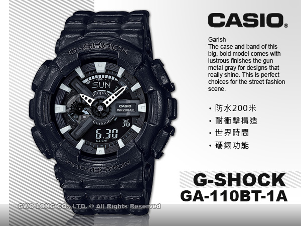 GA-110BT-1A CASIO G-SHOCK 雙顯錶 橡膠錶帶 防水200米