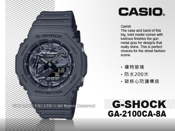 GA-2100CA-8A CASIO G-SHOCK 雙顯錶 迷彩 樹脂錶帶 灰 防水200米 GA-2100CA