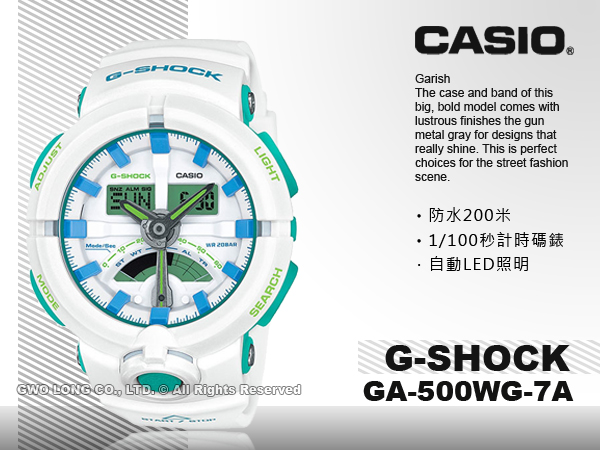 GA-500WG-7A CASIO G-SHOCK 雙顯錶 橡膠錶帶 防水200米