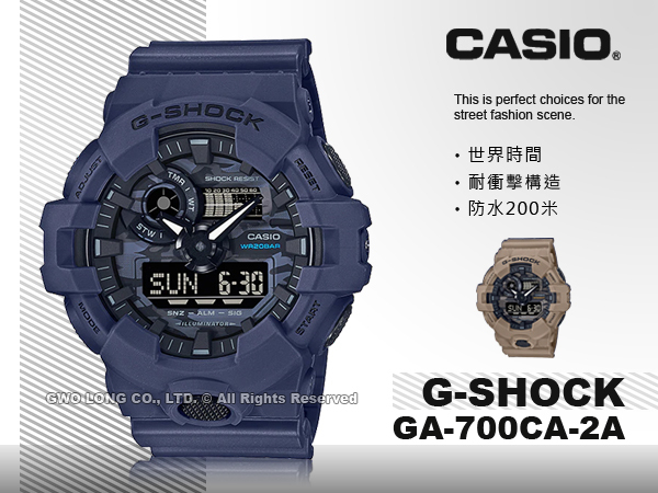 GA-700CA-2A CASIO G-SHOCK 雙顯男錶 迷彩 樹脂錶帶 LED 藍 防水200米 GA-700CA
