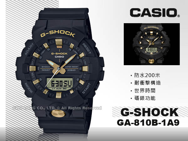 GA-810B-1A9 CASIO G-SHOCK 雙顯錶 橡膠錶帶 防水200米