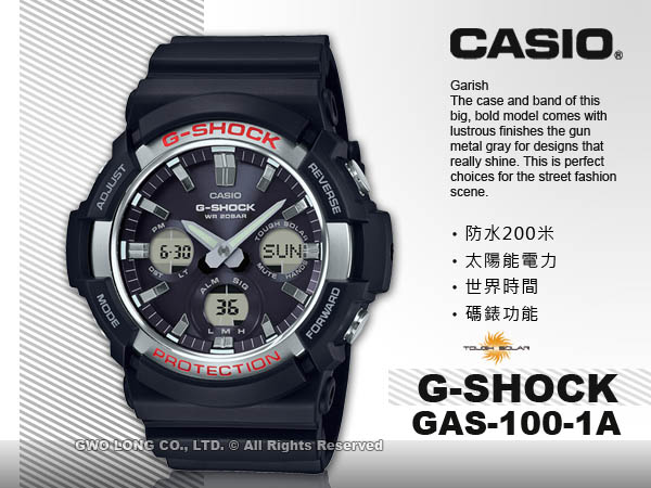 GAS-100-1A CASIO G-SHOCK 雙顯錶 橡膠錶帶 防水200米