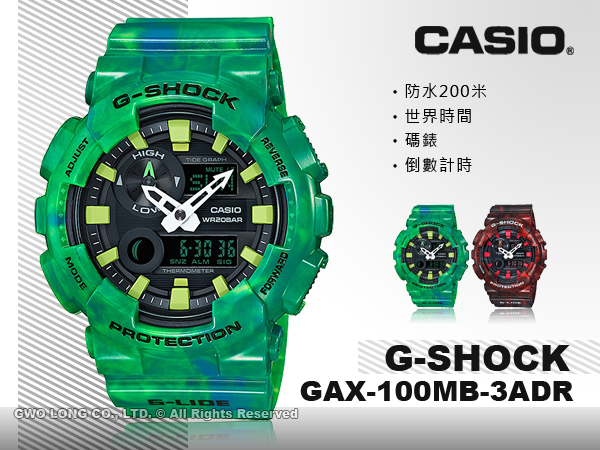 GAX-100MB-3ADR CASIO G-SHOCK 雙顯電子錶 溫度測量 防水200米 潮汐圖 月相資料