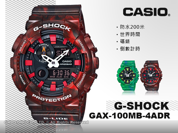 GAX-100MB-4ADR CASIO G-SHOCK 雙顯電子錶 溫度測量 防水200米 潮汐圖 月相資料
