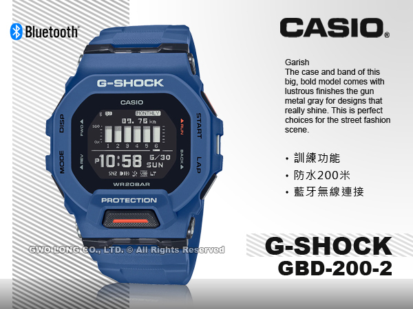 GBD-200-2 CASIO G-SHOCK 電子錶 運動訓練 藍牙連線 海軍藍 GBD-200
