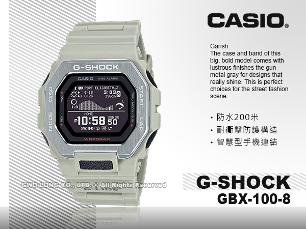 GBX-100-8 CASIO G-SHOCK 電子男錶 G-LIDE運動系列 膠質錶帶 防水200米 GBX-100