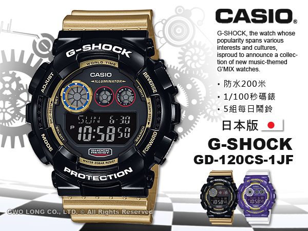 GD-120CS-1JF CASIO 日系款 G-SHOCK 數字電子錶 橡膠錶帶 防水200米
