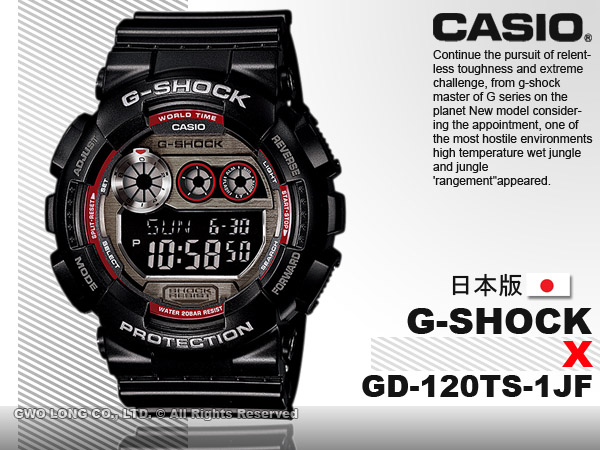 GD-120TS-1JF 日系款 CASIO G-SHOCK 數字電子錶 橡膠錶帶 防水200米