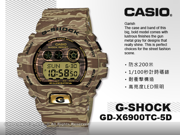 GD-X6900TC-5DR CASIO G-SHOCK 數字電子錶 橡膠錶帶 防水200米