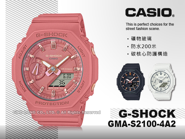 GMA-S2100-4A2 CASIO G-SHOCK 雙顯女錶 樹脂錶帶 珊瑚粉 防水200米 GMA-S2100