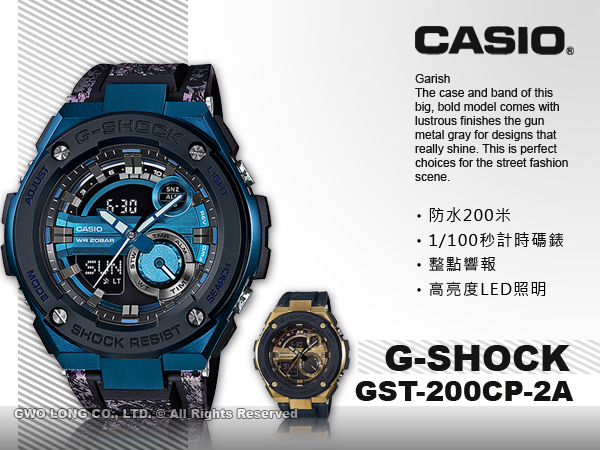 GST-200CP-2A CASIO G-SHOCK 雙顯錶 橡膠錶帶 防水200米