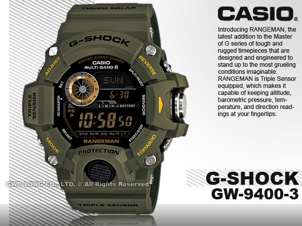 GW-9400-3DR CASIO G-SHOCK 數字電子錶 橡膠錶帶 防水200米
