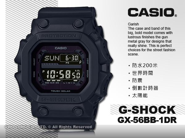 GX-56BB-1DR CASIO G-SHOCK 太陽能 電子錶 膠質錶帶 200米防水 防塵防震 耐衝擊