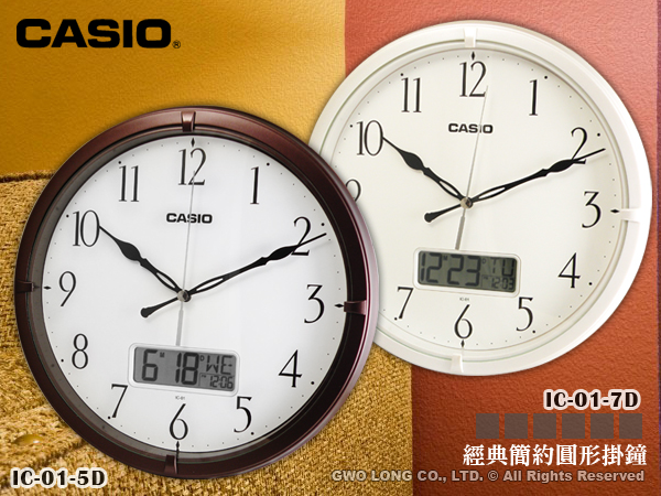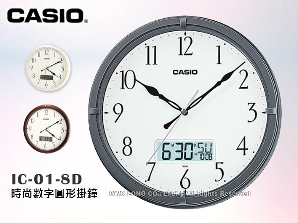 IC-01 CASIO 雙顯掛鐘 數位日期星期顯示 26公分