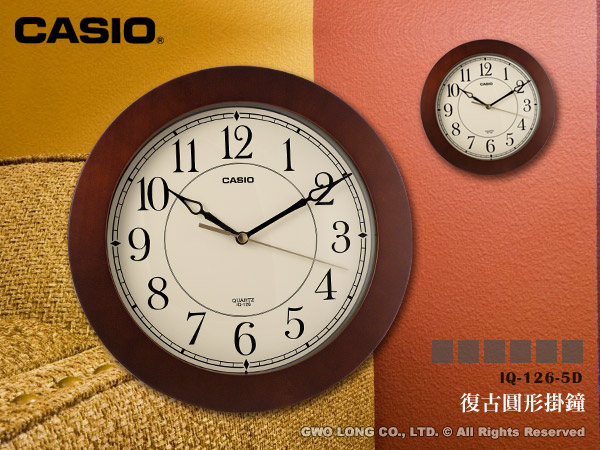 IQ-126-5D CASIO 掛鐘 平移秒針 無聲靜音秒針 26公分