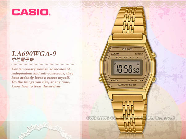 LA690WGA-9D CASIO 電子錶 不鏽鋼錶帶 樹脂玻璃 生活防水 碼錶