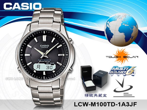 LCW-M100TD-1A3JF CASIO 日系電波錶 不鏽鋼錶帶 黑面 太陽能電力 世界時間