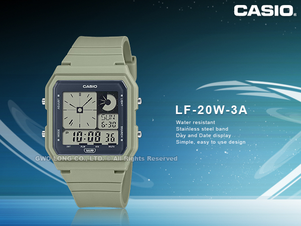 LF-20W-3A CASIO 卡西歐 復古電子錶 墨綠 時間雙顯示 輕巧時尚 生活防水 LF-20W