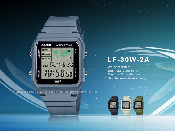 LF-30W-2A CASIO 卡西歐 復古電子錶 霧藍色 世界地圖 鬧鈴碼表 生活防水 LF-30W