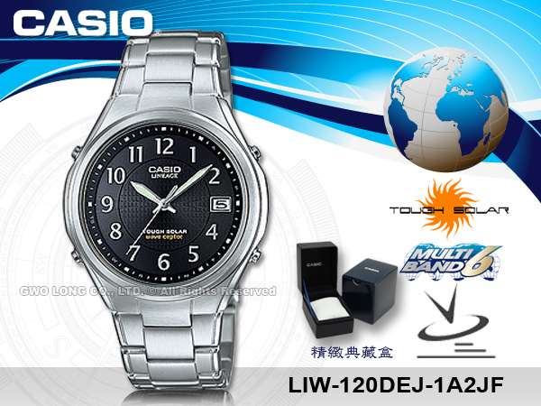 LIW-120DEJ-1A2JF CASIO 日系電波錶 不鏽鋼錶帶 黑面 太陽能電力 世界時間
